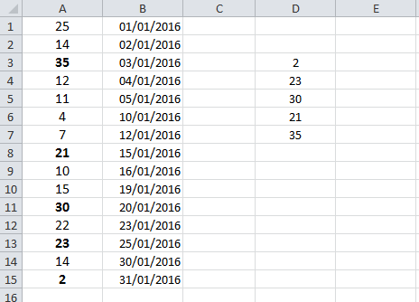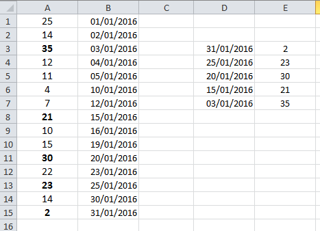 Pero no sé cómo hacer que el dato seleccionado se lleve asociada la celda con su fecha y pueda yo ordenar los datos por su fecha, desde la fecha más cercana a la más lejana de modo que quedase así: