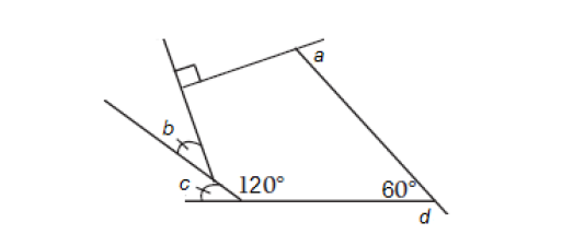 ¿Cuál es el valor de los ángulos a, b, c y d mostrados en la siguiente imagen?
