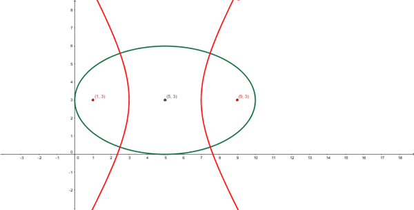 La excentricidad de una hiperbola es 2 y sus focos coinciden con los focos de la elipse de ecuacion 9x^2+25y^2-90x-150y+225=0. Halla la ecuacion de la hiperbola