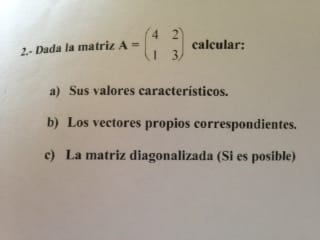 Y algo que no te han pedido pero se pide casi siempre es la matriz de paso, que es la que tiene los vectores propios puestos por columna