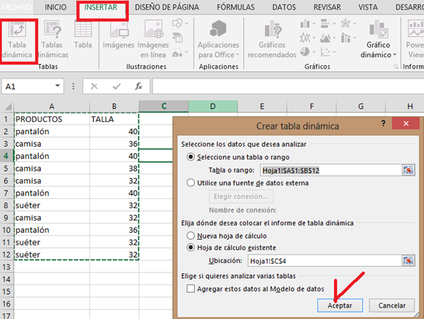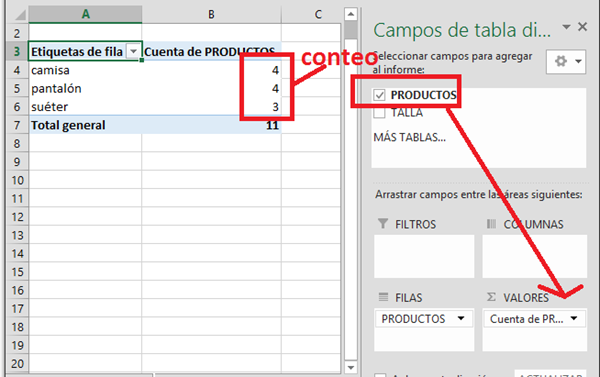 ¿Qué fórmula utilizo para poner cuantas veces aparece cada producto y que ese total aparezca a lado del último tipo de producto?