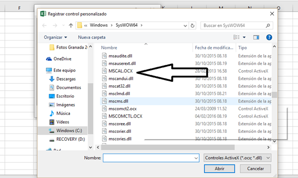 Como Registrar control mscomctl.ocx en excel 2010 y 2013?
