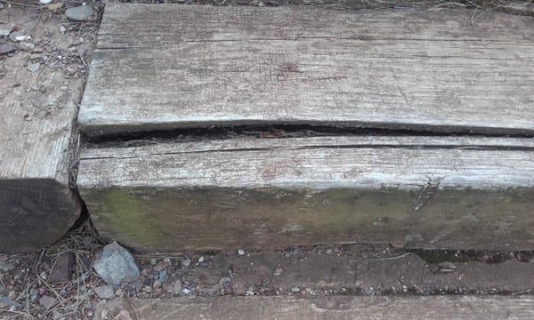 Necesitaría consejo sobre como arreglar las traviesas de madera que tengo en el jardín, están agrietadas. Adjunto fotos.