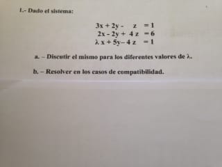 Alguien que me ayude con este sistema de ecuaciones lineal con parámetros!
