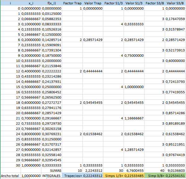 Para los trapecios necesitamos los valores en un punto de cada intervalo, para Simpson 1/3 se necesitan 2 puntos en cada intervalo y para Simpson 3/8 se necesitan 3 puntos.