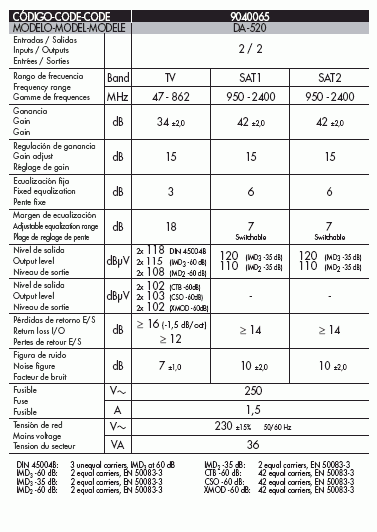 Tengo un amplificador de TV : ALCAD DA-520 al cual se le quemó la fuente de alimentación que tiene incorporada. Ante la imposibilidad de encontrar este repuesto habia pensado sustituirla por una fuente exterior pero desconozco el voltaje y potencia que necesita este amplificador.