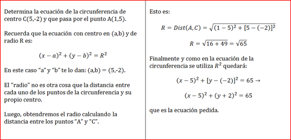 Determina la ecuación de la circunferencia de centro C y que pasa por el punto A