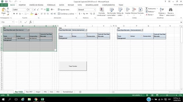 La tabla dinámica con la cual estoy intentando hacer lo ya mencionado, es la que esta resaltada.