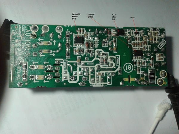 Otra vez le incordio con temas de fuentes. En esta ocasión se trata de la fuente de alimentación (y recargador de batería) de un portátil Samsung. Teóricamente la salida de la fuente debería ser de 19V (y soportar hasta 3,16 A, me sorprende que se ajuste tanto en el amperaje) pero da una salida que oscila entre unos 2V y unos 2,4V. El led también oscila.