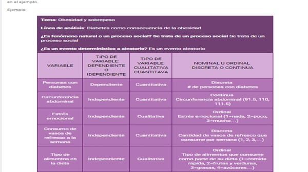 Variables: cualitativas –nominales u ordinales–, cuantitativas –discretas o continuas–, y dependientes e independientes
