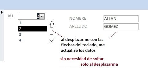 Mi pregunta es que si existe alguna forma de que al desplazarme a través del código del cuadro combinado con las flechas del teclado hacia abajo o hacia arriba me ayude a visualizar los datos.