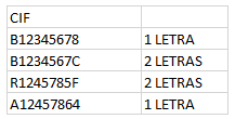 Distinguir entre CIF con 1 letra y con dos letras