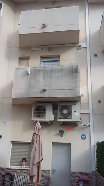 Yo vivo en un adosado, adjunto la foto de la ubicación del A.C y el ruido del compresor se oye desde el segundo balcón, no me ha dejado adjuntar los audios.