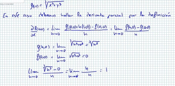 $$\begin{align}&\sqrt[3]{x^3+y^3}\end{align}$$la derivada parcial de x al origen me tendria que dar 1...