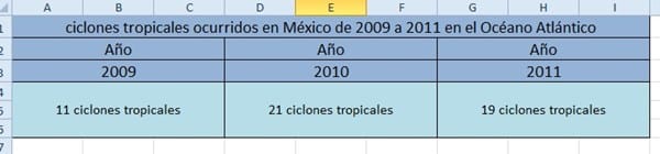 - Cuantifica los ciclones tropicales ocurridos entre 2009 y 2011 en el Océano Atlántico. Menciona cuántos ciclones tropicales han ocurrido en México en el periodo determinado.