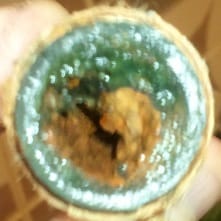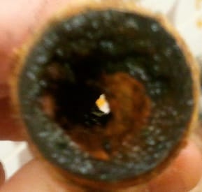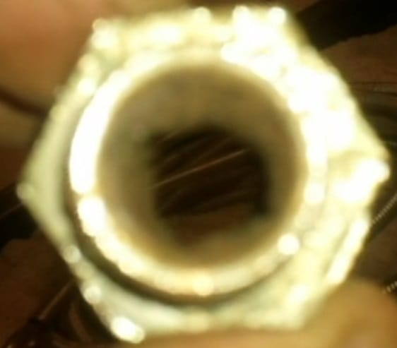 El caso es que en el grifo de la cocina el calentador a gas solo se enciende poniéndolo a que caliente al máximo, lo cual no es normal, asique desmonté la tubería para ver si estaba obstruida. Y me encontré con esto, aún me extraña viéndolo que llegara agua, pero al ser esta pieza de mayor tamaño que el ancho del latiguillo se ve que bastaba para que no se notase que estaba completamente obstruida al dejar pasar suficiente agua (de hecho tras la mejora no noto realmente diferencia)