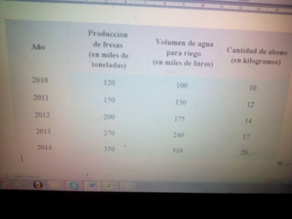 AÑO PRODUCCIÓN DE FRESAS VOLUMEN DE AGUA P/RIEGO CANTIDAD DE ABONO EN KG