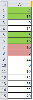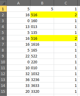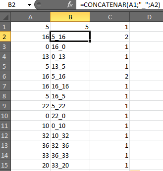Por ejemplo las veces que sale 5 después del 16 en la imagen, que sería 5y16 seguidos = salen 2 veces. No me vale que cuente 16 después de 5 por que sería otra serie.
