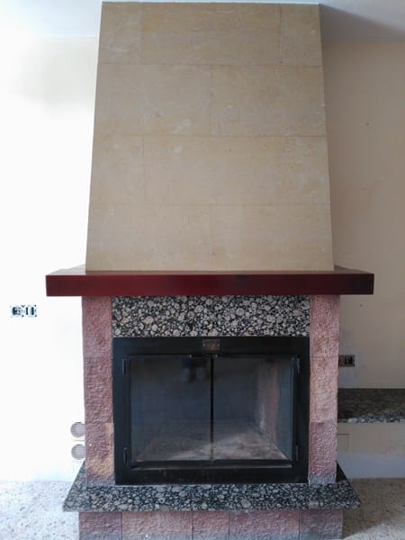Queremos dar un aire nuevo a esta chimenea. La parte de arriba (piedra pulida) la queremos ocultar, la piedra es lisa, no tiene rugosidad, pero tiene juntas, las cuales queremos ocultar tambien, dando un aspecto final liso, i pintado con pintura blanca.