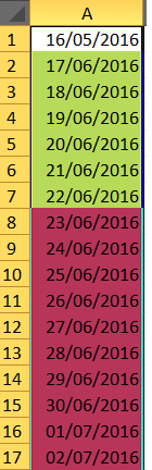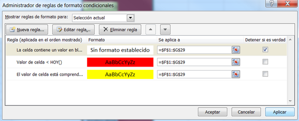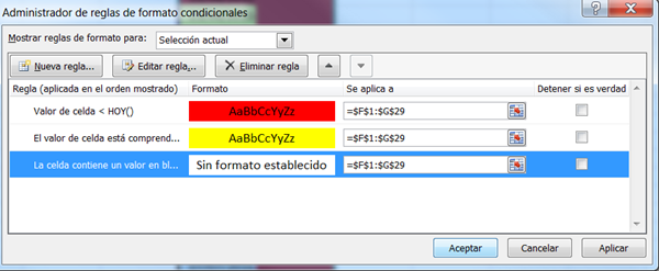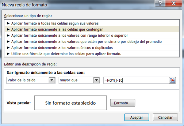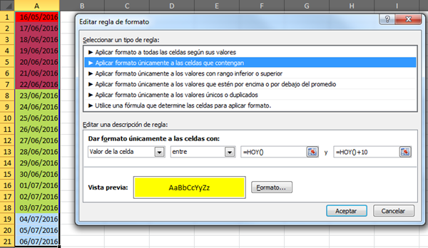 Desde el día de hoy excel me avise con celda color amarillo 10 días para vencer y rojo vencido, en las celdas van las fechas a vencer.