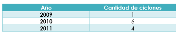 Investiga sobre el número de ciclones tropicales ocurridos en México de 2009 a 2011 en el Océano Atlántico.
