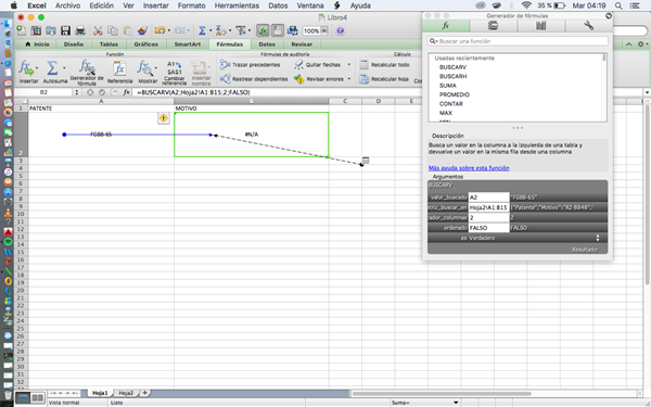 Hola!, tengo un problema con la fórmula buscarv ya que como se ve en la imagen la patente que estoy buscando si esta en la planilla de búsqueda pero me arroja N/A entonces no entiendo que es lo que pasa que no me da el resultado...