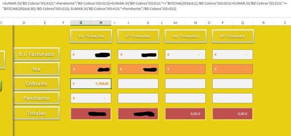 A ver quien me puede echar un cable, estoy intentando que me sume valores por trimestres con esta fórmula, pero no me devuelve correctamente.
