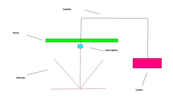 Mi cuadro eléctrico está situado en la entrada de la casa que está muy bien decorada y tal. Ahora quiero actualizar el cuadro (todo nuevo, en parte) y tengo pensado poner canaleta por la pared (rozas no). El recorrido de la canaleta son como 5 metros nada más y luego entra en un bajo que es un almacen y ya no me hace falta que quede bonita la instalación (tubo de pvc). Lo que pensé es entrar con canaleta en el bajo, poner una caja de registro y salir con tubo. Así quedaría asilado el cambio y no se notaría. ¿Cómo lo veis? Os dejo un esquema.