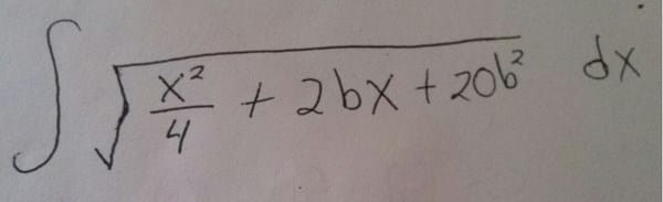 $$\begin{align}&=\ \int \sqrt {(\frac{x}{2}+2b)^2+16b^2}\ dx\\&\\&u=\frac{x}{2}+2b \Rightarrow du=\frac{dx}{2} \Rightarrow dx= 2 du\\&\\&= \int \sqrt {u^2+16b^2}\ 2 du=\\&\\&=2 \int \sqrt{16b^2 \Big(\frac{u^2}{16b^2}+1\Big)}\ \ du=\\&\\&\\&\\&=2·4·b \int \sqrt {(\frac{u}{16b})^2+1} \ du=\\&\\&t=\frac{u}{16b} \Rightarrow du= 16b \ dt\\&\\&=8b \int \sqrt {t^2+1}\ \ 16b \ dt=\\&\\&=128b^2 \int \sqrt {t^2+1}\ dt\\&\end{align}$$esta integral es la que se puede hacer de dos maneras: