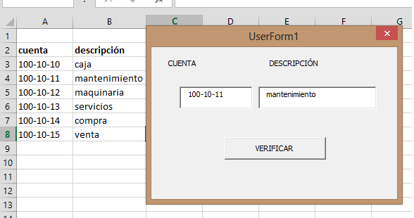 Tengo un textbox llamado “Cuenta” y otro textbox llamado “Descripción” y lo que quiero es un código en vba para cuando ponga la cuenta correcta automáticamente me llene la descripción, pero que solo sea cuando pongo la cuenta correcta.