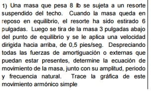 Una masa que pesa 8 lb se sujeta a un resortesuspendido del techo. Cuando la masa queda enreposo en equilibrio,