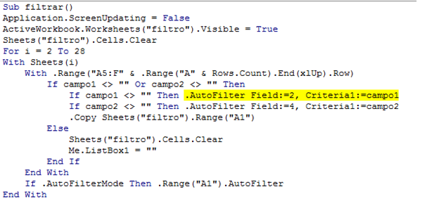 ' If campo1 <> "" Then .AutoFilter Field:=2, Criteria1:=campo1