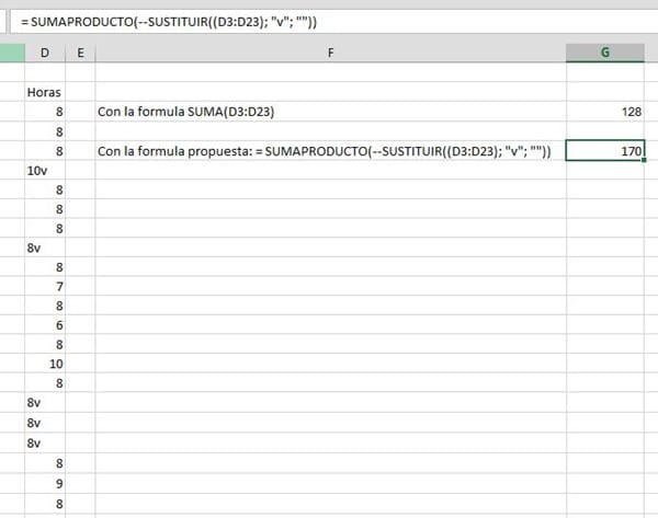 ¿Hay alguna manera de que me sume todos los números de la celda, independientemente de si están o no marcados con la letra "V"?