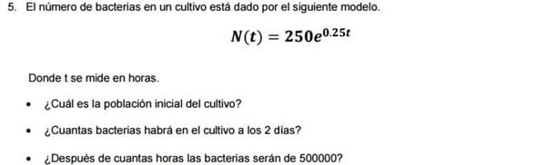 El número de bacterias en un cultivo está dado por el siguiente modelo.