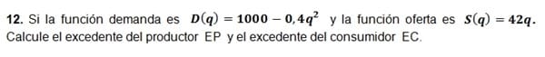 Llamaremos (qo, po) al punto de equilibrio, D(q) la función de la demanda y S(q) la de la oferta. Estas son las fórmulas de los excedentes del productor (ep) y del consumidor (ec)