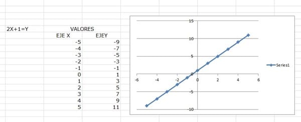 Apartir de una tabla de valores la representacion grafica de 2x+1=y