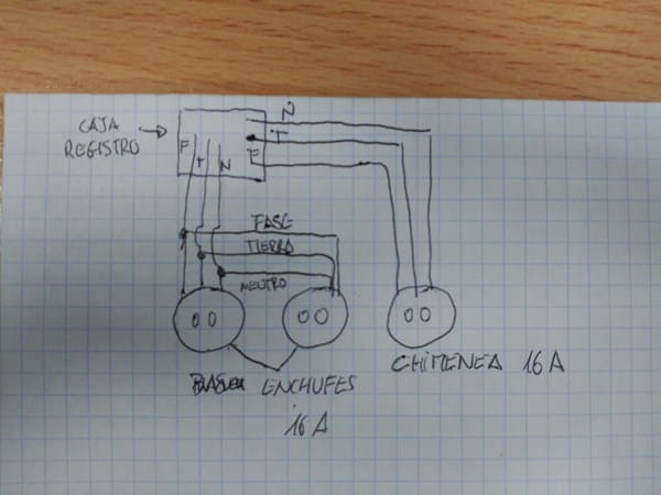 Tengo un pequeño problema/ contratiempo, el tema es que tengo en una pared tres enchufes, dos de ellos están conectados en paralelo para la tele y para otro aparato, el tercero esta cableado independientemente porque conectaré una chimenea eléctrica de 2000W y me dijeron que tenía que llegar al cuadro individualmente del resto de enchufes(chimenea tiene Pía de 16A). El problema es que el tubo es de 20 y por normativa sólo se pueden pasar 5 de 2,5. ¿Podría conectar las tierras de enchufe a otro, es decir que solo saliera de estos tres enchufes un cable de tierra y puenterlas de uno a otro? Así me quedarían 5 cables y cumpliría a normativa.?