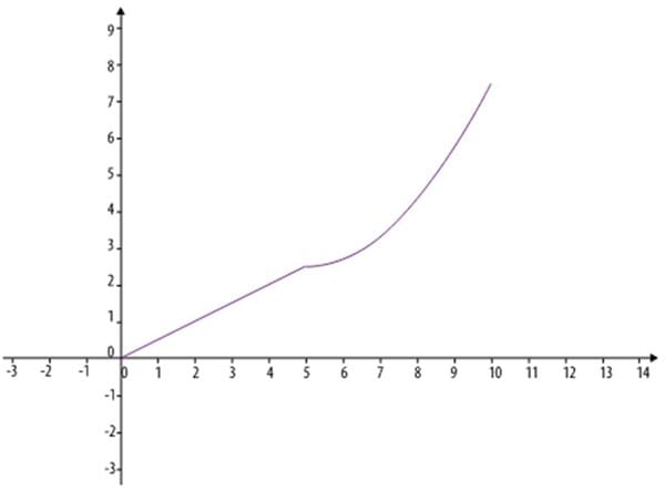 Analiza la siguiente gráfica que representa una función de la posición de un objeto con respecto del tiempo: en el eje x se encuentra el tiempo en minutos, en el eje y se encuentra su posición en el momento t (tiempo).