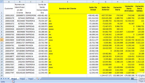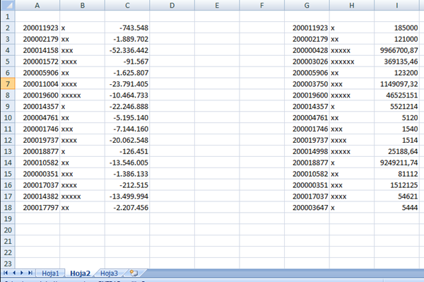 Muy bien, paso a detallarles en lo que requiero su ayuden que la columna "K" se ordene de menor a mayor, por ser valores en negativo, del resultado debe tomar los primeros 17 números negativos, y deben ser pegados como valor en la hoja que le sigue las columnas "A", "E" y "H", una ves terminada esta rutina pasaría a evaluar de la hoja 1 la columna "J", en este caso son número en positivos por lo que se orndenan de mayor a menor y al igual que hiciéramos en los pasos anteriores solo tomaremos los primeros 17 Mayores, de esta columna lo pegaremos en la Hoja2 que se empleo para el paso anterior, dejando 3 columnas de por medio, quedando "A", "E" y "J" se tendría que ver así;