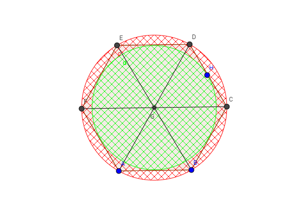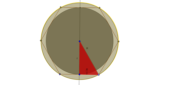 Tengo el siguiente ejercicio, a ver si me pueden ayudar. En un hexagono se han inscrito y circunscrito 2 circulos de radio r y R respectivamente, determine el area del hexagono si el area del anillo circular es igual a 4 pi.