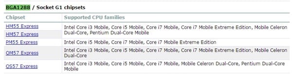 En esta lista de actualización de procesadores se comprueba que el equipo es compatible con procesadores I7 e I5 (familia mobile)