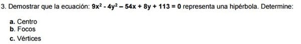 Demostrar que la ecuación representa una hipérbola y Determine centro, focos y vértices