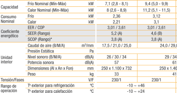 ¿Para dos a/a, una de 8kw y otra de 11kw que secciones cable para alimentarlas y protecciones magnetotérmico y diferencial?