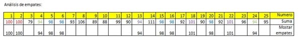 Quisiera que me ayudaran para que en una fila que se muestran la suma de 25 números solo me aparezcan los datos que se repiten, si es que hay una formula o una macro para que pueda hacer esto.