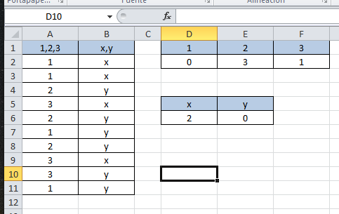 En D2 cuenta 1, por que el 1 en A lleva sin salir 1vez, en E2 marca 0 por que el 2 acaba de salir,