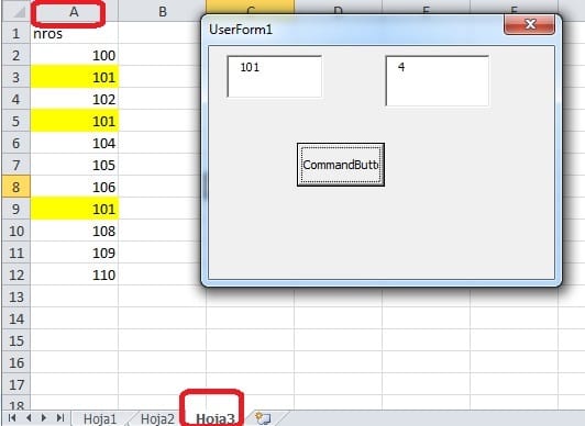 Se carga un formulario donde en un texbox escribes un número, posteriormente debe contar cuantas veces aparece en la columna ( por ejemplo en la columna C), sumarle uno al resultado y escribirlo en otro textbox.