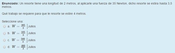Un resorte tiene una longitud de 2 metros, al aplicarle una fuerza de 35 Newton, dicho resorte se estira hasta 3,5 metros.