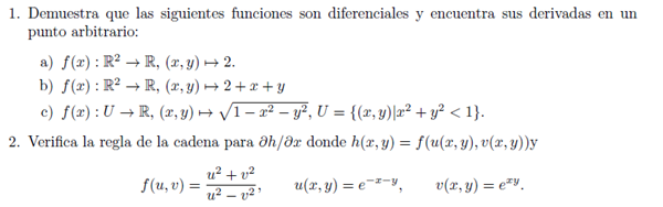 Y para la tercera si lo hacemos por el teorema de las derivadas parciales las calculas que es fácil y existen y compruebas que son continuas porque dada la restricción x^2+y^2 < 1 nunca se anula el denominador, por lo tanto la función es diferenciable en todo U.
