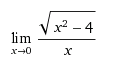 $$\begin{align}&\lim_{x\to 0} \frac{\sqrt {x^2-4}}{x}=\frac{\sqrt{0^2-4}}{0}= \frac {\sqrt{-4}}{0}\end{align}$$Un momento la función está definida en