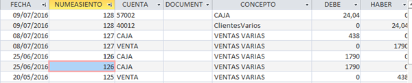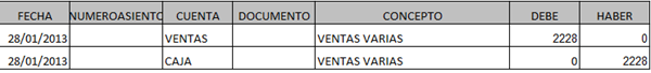 En un mismo día hay apuntes de Entradas y de Salidas que pueden ser desde 2 hasta un montón de ellos en función de los Conceptos.
